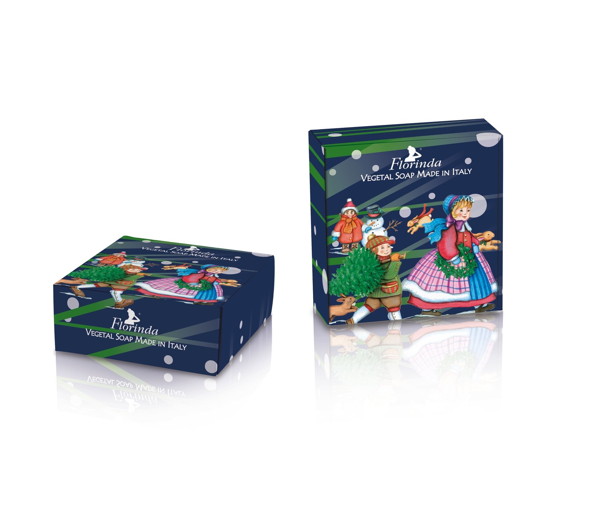 Vianočné rastlinné mydlo Florinda s podmanivou vôňou dobrým zložením a krásnym dizajnom, zabalené v kvalitnom dekoratívnom balení.