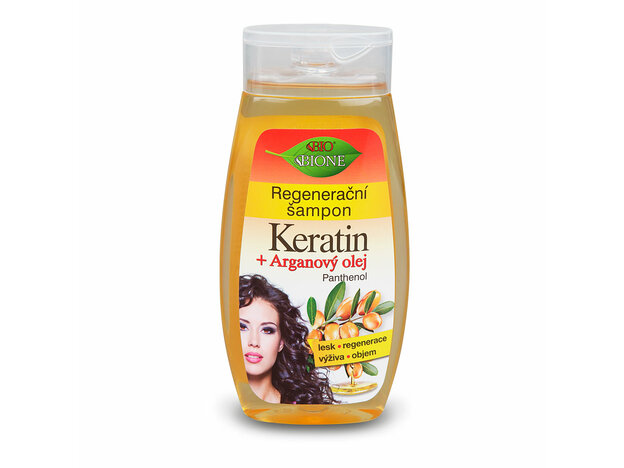 Šampón je doplnený o regeneračný pantenol a o kondicionačný rastlinný lecitín. Lesk a hladkosť vlasov sú podporené prídavkom vzácneho arganového oleja. Po aplikácii prostriedku dochádza k zväčšeniu objemu účesu a k zvýšeniu lesku vlasov. Po umytí vlasov doporučujeme pre maximalizáciu regenerácie použiť ďalší prostriedok z rady Keratin: bezoplachový kondicionér, regeneráciu Keratín, regeneračný kondicionér alebo masku. Používajte pravidelne a dlhodobo.