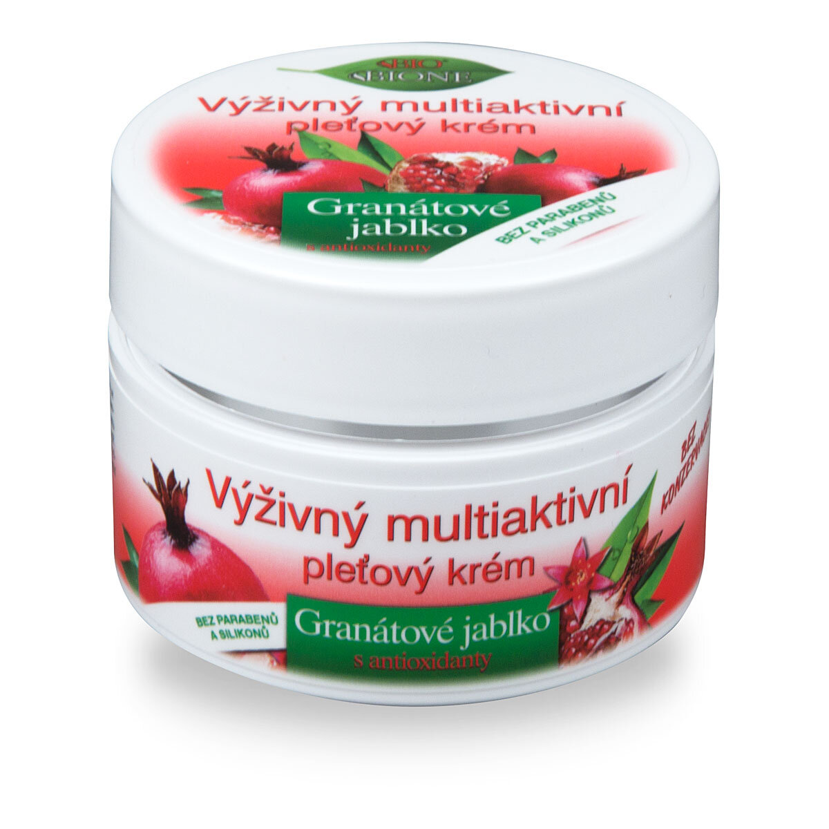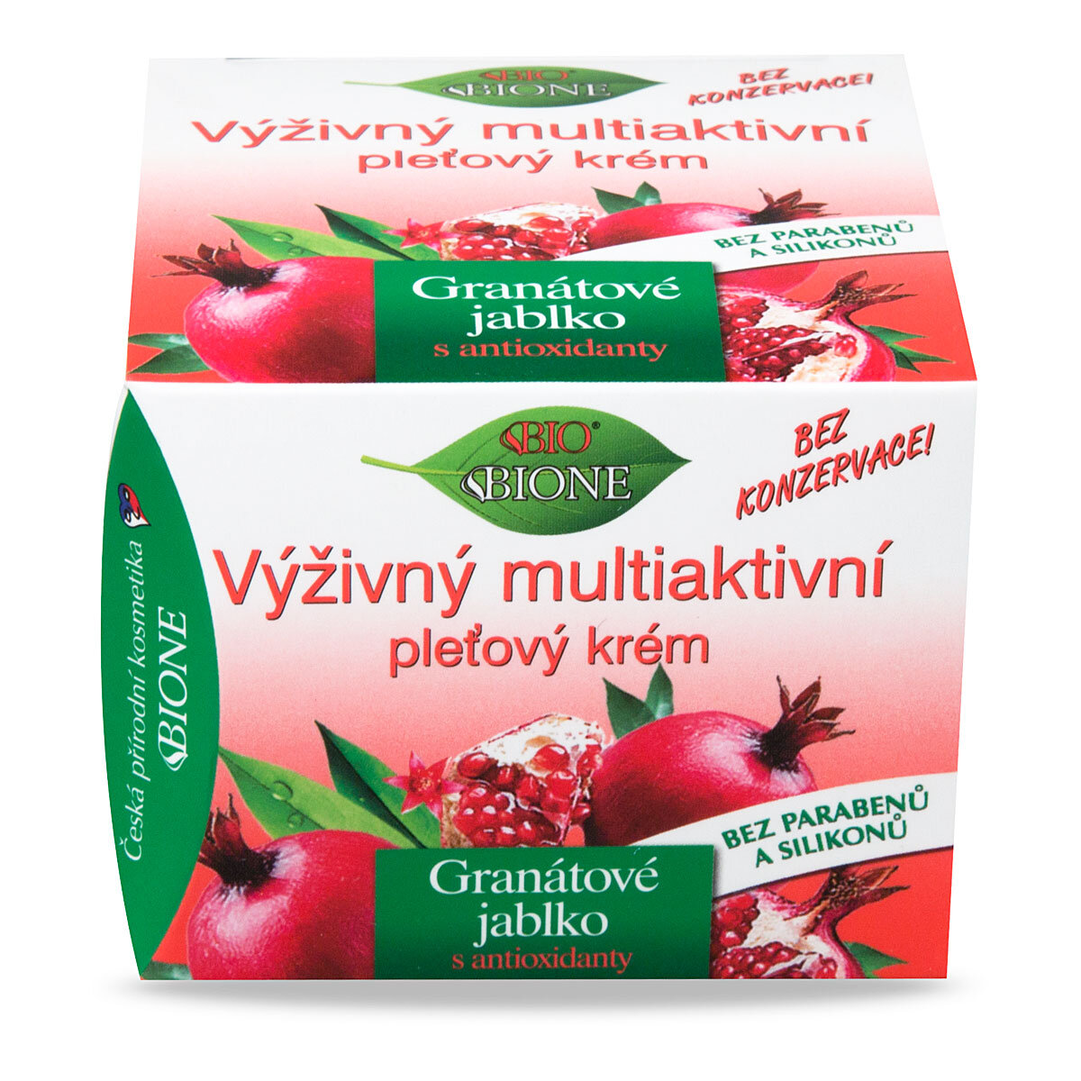 Prípravok je vyrobený v BIO fomulácii bez SLS, SLES, neobsahuje ropné produkty, parabény, ethoxyláty ani silikóny, je použitá hypoalergénna parfumácia. Prípravok je šetrný k Vám i prírode! Žiadny iný výrobok nemá zloženie ako Bio BIONE Výživný multiaktívny pleťový krém Granátové jablko.