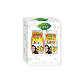 Vlasová kozmetika Keratín + argánový olej je určená najmä pre vlasy bez lesku, bez pružnosti a výživy. Argánový olej obsiahnutý vo výrobkoch dodáva pružnosť, hydratuje a vyživuje suché, krehké, farbené a často tepelne upravované vlasy.