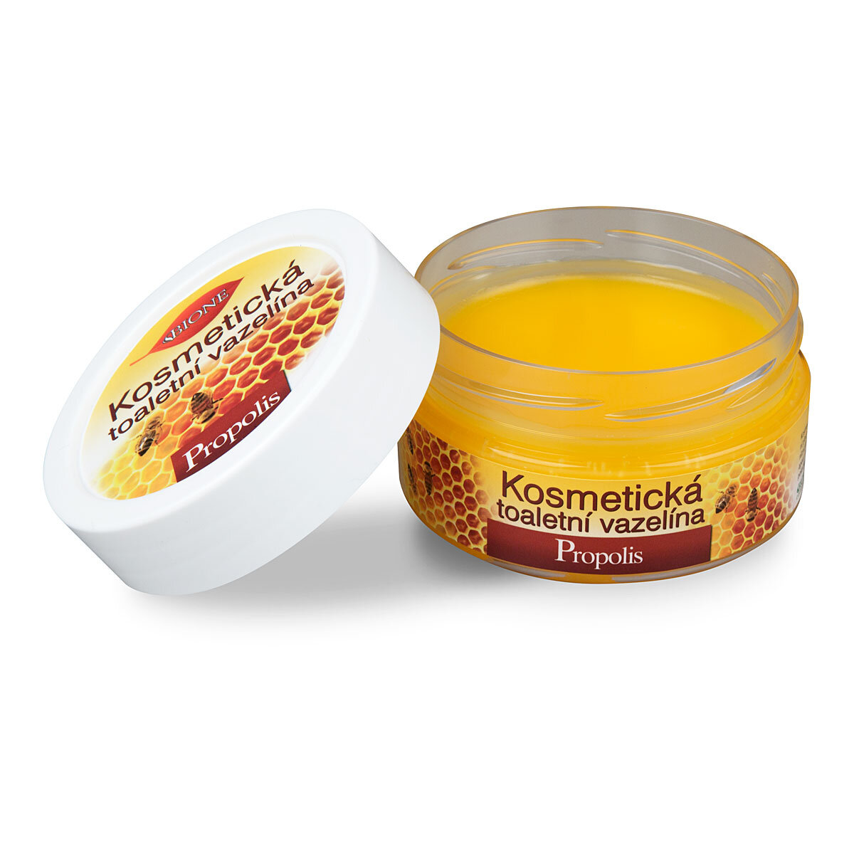 Kozmetická toaletná vazelína s pravým prírodným propolisom pokožku zvláčni, premastí, chráni pred vysúšaním a praskaním. Propolis sa v ľudovom liečiteľstve úspešne používa pri liečbe rôznych kožných ochorení, ekzémov alebo zle sa hojacich poranení. Vhodná na ruky, nohy, a pod. Jemná, nedráždivá, bez emulgátorov a konzervačných látok.