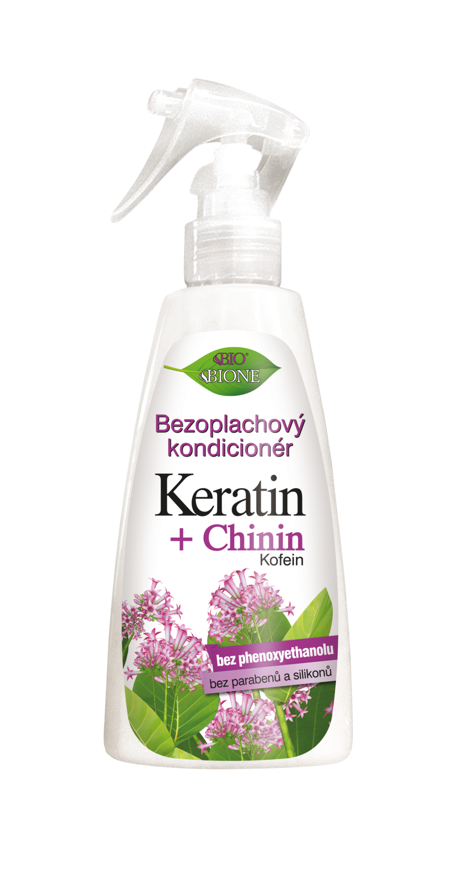 Na vlasy umyté šampónom BIONE a prepláchnuté vodou nastriekajte potrebné množstvo prostriedku a tento do vlasov po dobu asi 20 sekúnd riadne vmasírujte. Vysušte uterákom, neoplachujte. Ďalej upravte bežným spôsobom. Pre maximalizáciu regenerácie môžete použiť ďalšie prostriedky rady Keratín + Chinín. Používajte pravidelne, bezoplachový kondicionér vyživuje vlasy na veľa hodín. Vykazuje vysokú rozčesávateľnosť vlasov, zväčšuje ich objem. Obsah fľaštičky vystačí až na 100 použití.